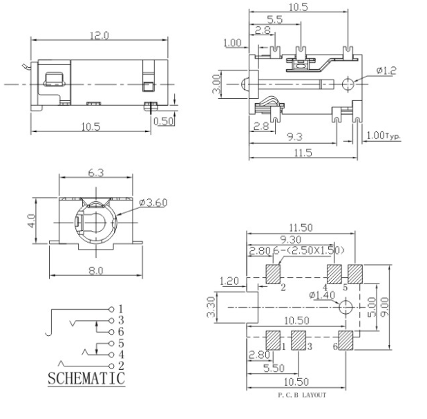贴片四极3.5耳机母座/超薄3.5MM耳机插座4极 PJT-00066