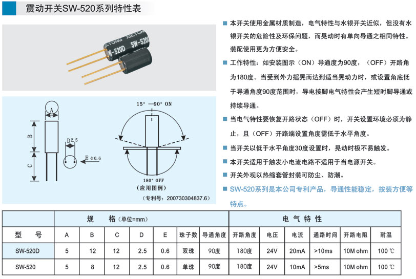 关键产品:SW-520,滚珠开关,多方向滚珠开关,角度滚珠开关,钢珠开关,珠子开关,晃动开关,手珠开关,滚珠开关