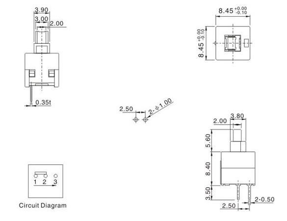 8.5x8.5自锁开关2PIN/8.5x8.5无锁开关2PIN/8.5x8.5按键开关2PIN