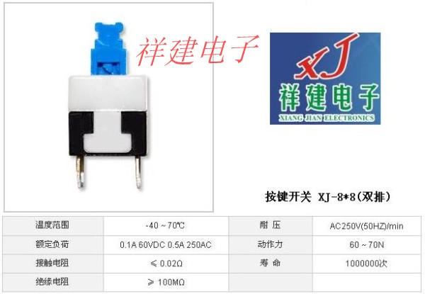 祥建电子科技有限公司是一家开发、设计、生产销售及各种开关.插座:振动开关,弹簧开关,拨动开关,叶片开关,轻触开关,按键开关,耳机插座,DC插座。