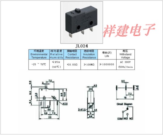 祥建电子科技有限公司是一家开发、设计、生产销售及各种开关.插座:振动开关,弹簧开关,拨动开关,叶片开关,轻触开关,按键开关,耳机插座,DC插座。