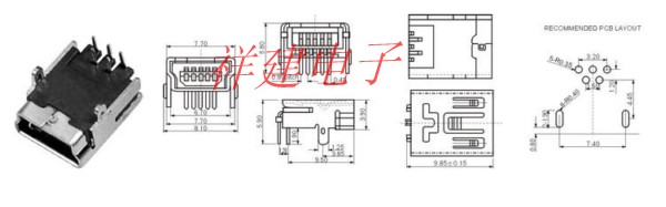 MINI USB 5P-F 90°插板二支脚