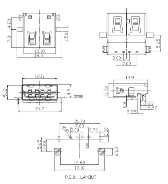 沉板式2.0USB插座,沉板式2.0 USB母座 USB-10170