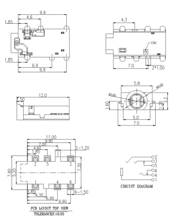 贴片2.5耳机插座 /超薄2.5耳机插孔 PJ-2.5-019