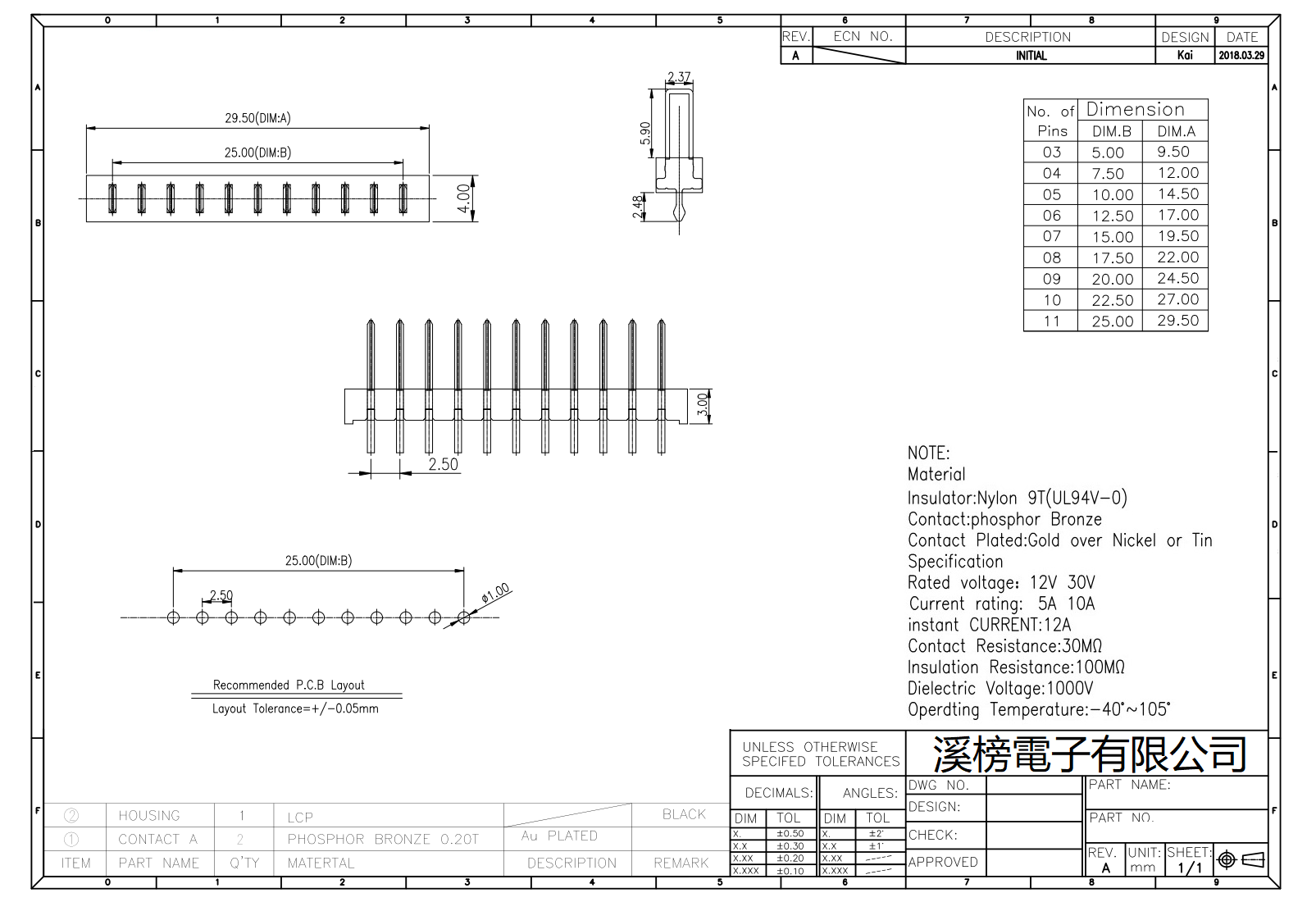 表面镀层:金在镍/锡之上,镀层厚度3U″