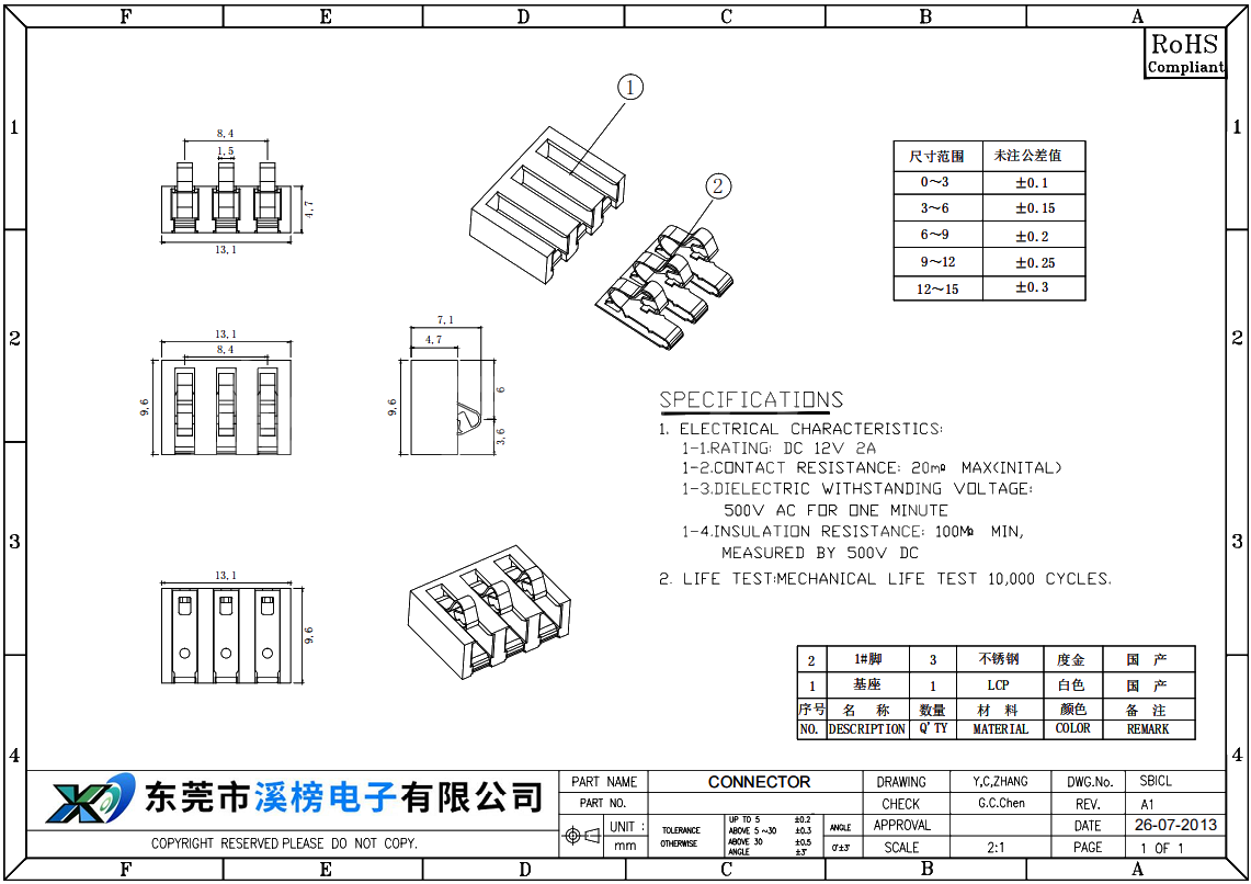 3绝缘阻抗: 100MQ Min AC500V (50~ 60Hz) 1Minute