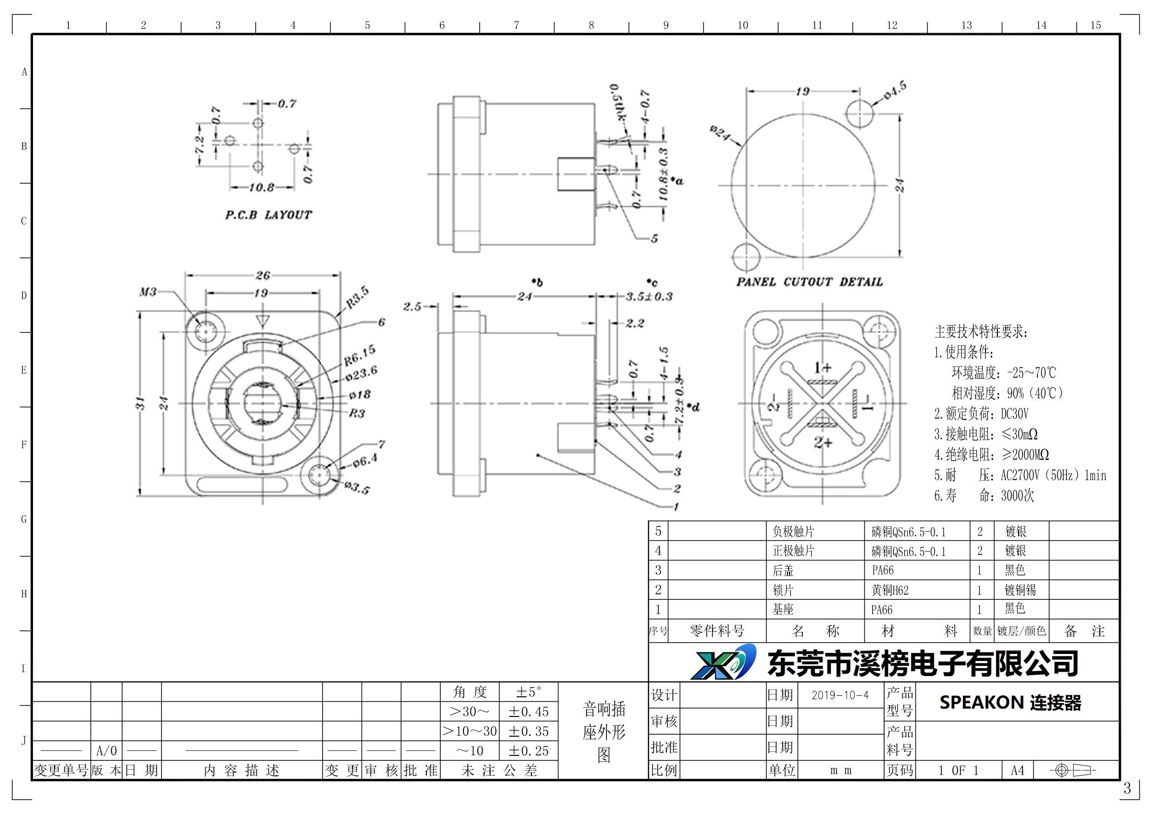 Speakon连接器系列主要技术指标specification Of Speakon Jack: